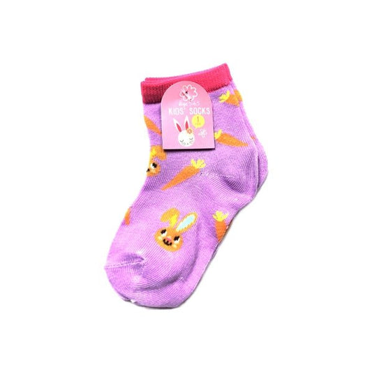 Kids Colorful Socks - Lavender/Pink Trim/Multicolor Carrots and Bunny (One Pair) Select Size