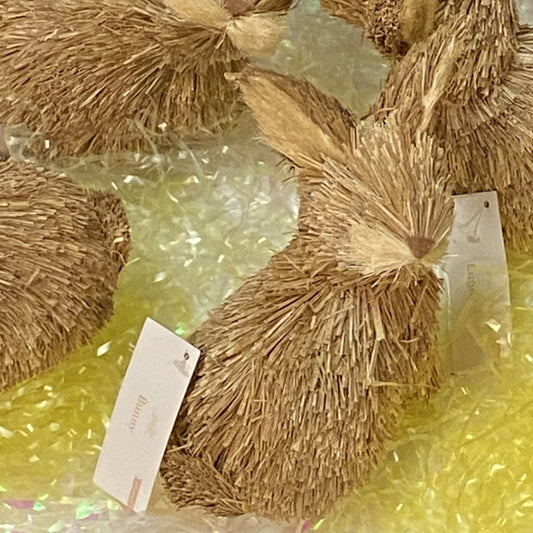 Crescent Brown Sitting Bunny Straw Figurine (6" x 5.5" x 4")