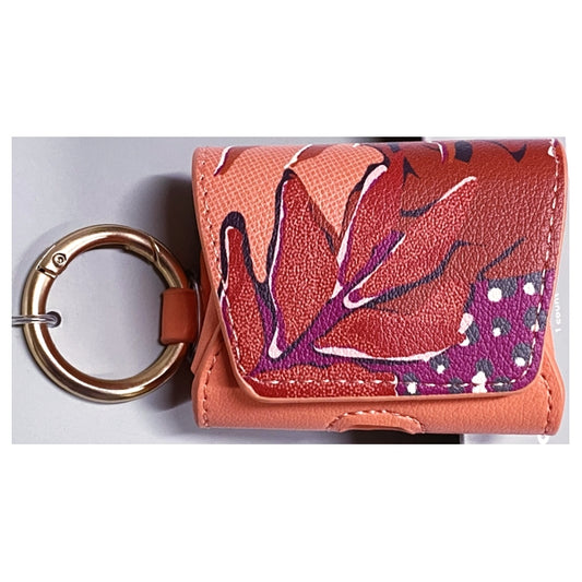 HeyDay EarBud Textured Faux Leather Case Cover with Carabiner Clip for AirPods Charging Case - Peach/Botanical (Fits AirPods Pro Case) Wireless Charging Compatible